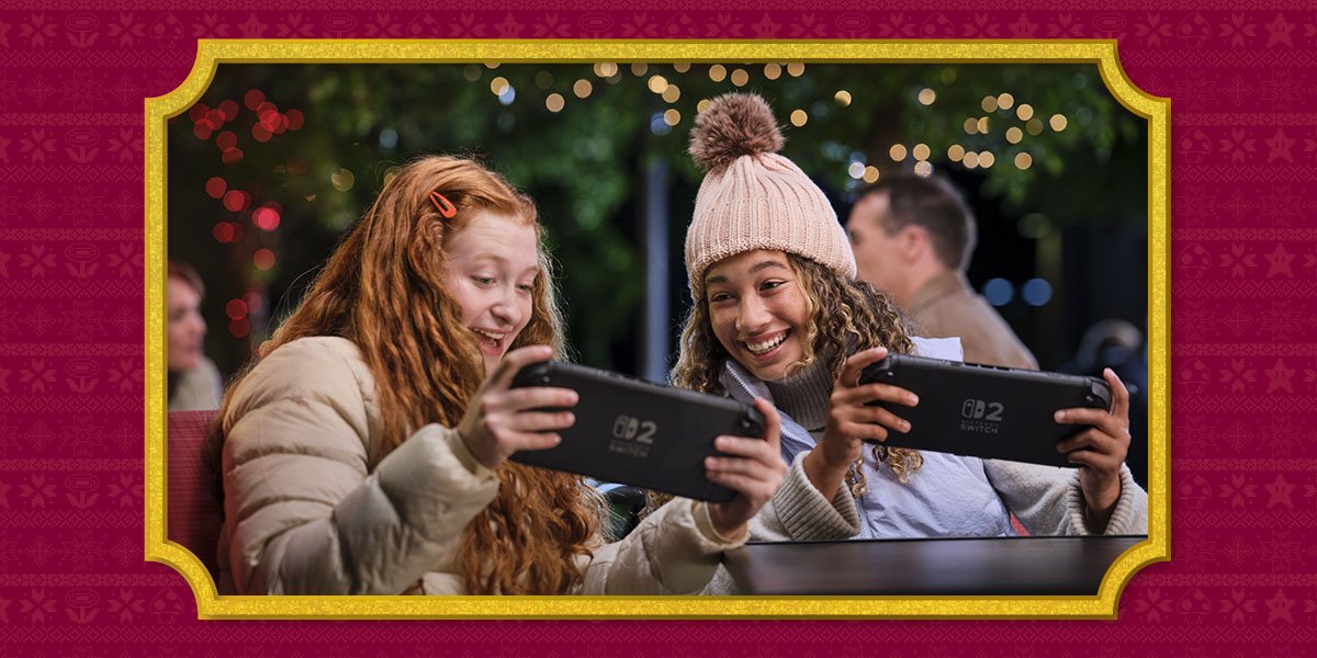 Away from friends during the holidays? You can meet up with your pals online in GameChat, even if everyone is far away. Up to four people can share the screen of whatever they’re playing. For example, you can catch Pokémon in the Pokémon Legends: Z-A – Nintendo Switch 2 Edition game while another friend plays the Mario Kart World game, another plays the Kirby Air Riders game, and another plays the Donkey Kong Bananza game.