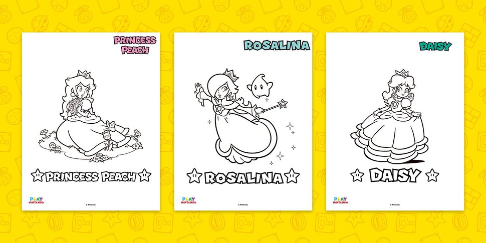 Calling all royals! Princess Peach, Princess Daisy, and Rosalina coloring sheets are here for you to download and print. There are three different pictures to color in with crayons, pencils, or markers.